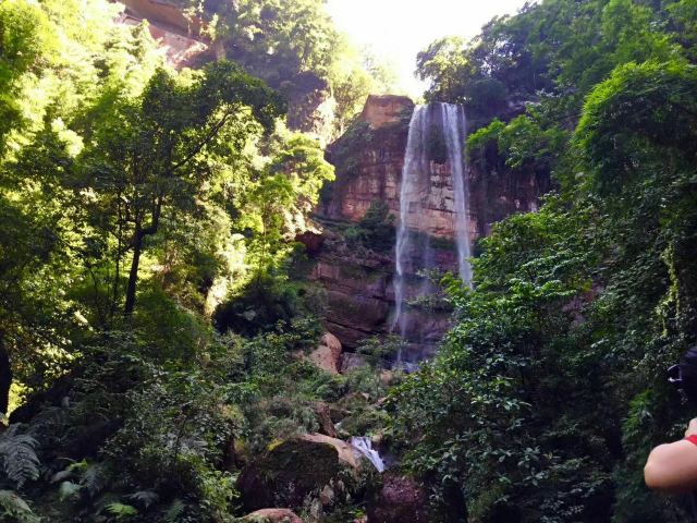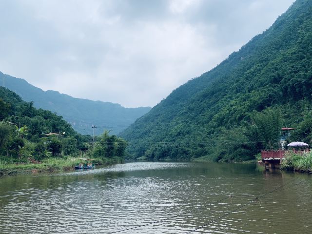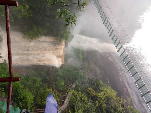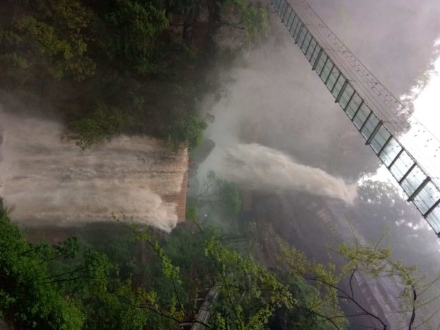 最好的风景是顶部的瀑布,要看到这个风景,就需要过玻璃栈道,栈道这个收费60,感觉体验不太好。反倒是门口河边的风景特别好。河流平静,穿梭在山间,清幽雅致,特别美。