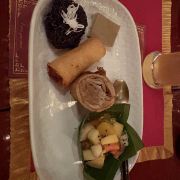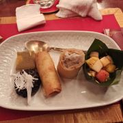 席地而坐的高棉风味晚餐品类比较全,也算精致,但是柬埔寨的餐饮也就那么回事儿,对饮食比较挑剔的可能要将就了,酒水要单独付费这个要注意。