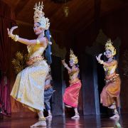 阿普莎拉剧场以传统的半殖民地风格建造,充满了宏伟的气息。从原始的木质外观到古色古香的装饰和霓虹灯牌,旧剧院的魔力依然鲜活。每当夜幕降临,阿普莎拉剧场便敞开大门,展示柬埔寨丰富的文化遗产和传统表演艺术。舞者、歌手和音乐家将在传统乐队的伴奏下,表演三支经典舞蹈和两支乡村舞蹈。演出之前,还将提供饮品服务和地道的美食,让观众享受一场完美的文化盛宴。