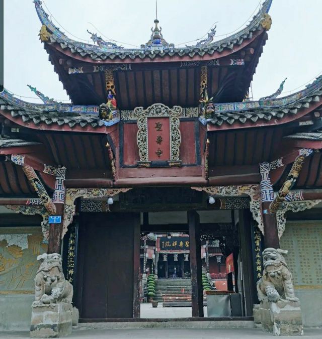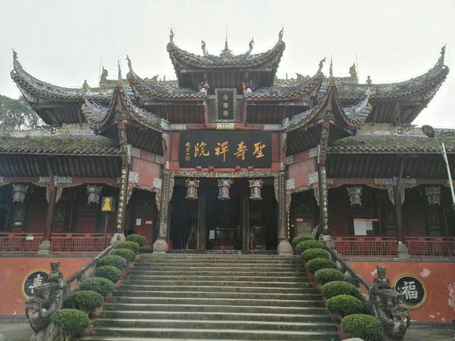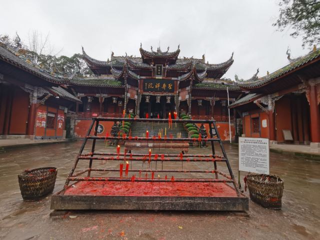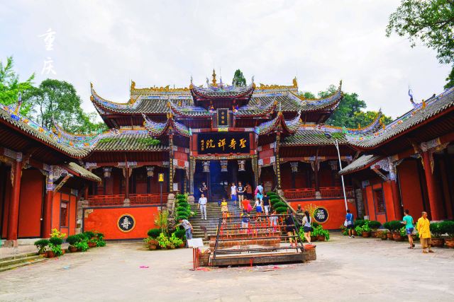 作为宝顶石刻的附属古建包含在宝顶石刻大门票内。从宝顶石刻游览完后,往出口一直就会经过圣寿寺,香火非常旺盛,寺内建筑的飞檐翘角很精致漂亮。从圣寿寺出来基本上整个宝顶景区就游览完了,可坐观光车直接到大足石刻景区停车场那,步行的话也不远。