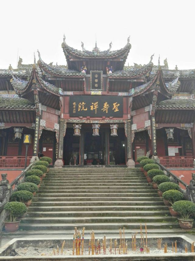 5分 超棒游览完宝顶石刻后,继续前行最先映入眼帘的是圣寿寺,五重大殿,一重更比一重高,依山构筑,古色古香,巍峨壮丽。