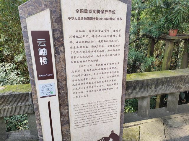 5分 超棒黄山抗战旧址群-云岫楼(蒋介石黄山官邸)位于重庆市南岸区重庆抗战遗址博物馆内,重庆抗战遗址博物馆云岫楼,见证了一段历史的风云变幻。这座建于1925年的建筑,占地167平方米,建筑面积364.5平方米,中西合璧的三层砖木结构,静静地坐落在密林之中,四周壁崖陡峭,仅有前后狭窄石梯相连。云岫楼不仅是蒋介石的重要居所和办公地点,更在抗战期间成为军事、政治决策的重要场所。蒋介石的卧室位于二楼右角,宽敞且视野开阔,三面大玻璃窗使他能欣赏群峰争秀,洞察山上山下的行人。顶层设岗哨,楼下建防空洞,而侧边的基督教礼拜堂,是蒋介石常去祈祷的场所。底楼则是会议室的休息室,军政要员在此研商机密。云岫楼前有一座独秀的小峰,原建有名为望江亭的小亭。蒋介石常在此欣赏山景和两江风光。如今这里成为博物馆的一部分,别墅内的二楼卧室、办公室和会客室分别展出了蒋介石在黄山工作、生活的历史图片和重要文稿,以及相关文史资料。1992年4月7日,重庆市人民政府将其列为市级文物保护单位,以纪念这段历史的辉煌与沉痛。