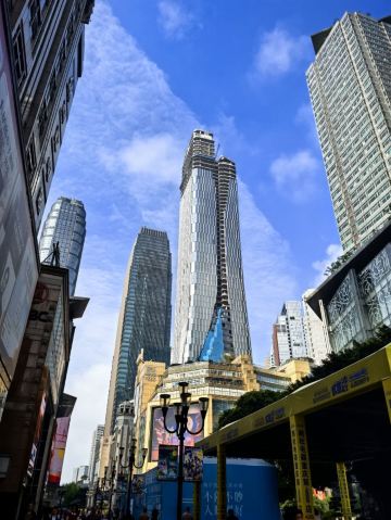 站在解放碑下仰望,1947年的胜利碑刺破雾都天际,与WFC的玻璃幕墙完成世纪对视。八一路的酸辣粉香气与Gucci橱窗的冷光在空气中角力,穿高跟鞋的都市丽人与挑扁担的棒棒军擦肩而过——这里是重庆最暴烈的美学实验场。