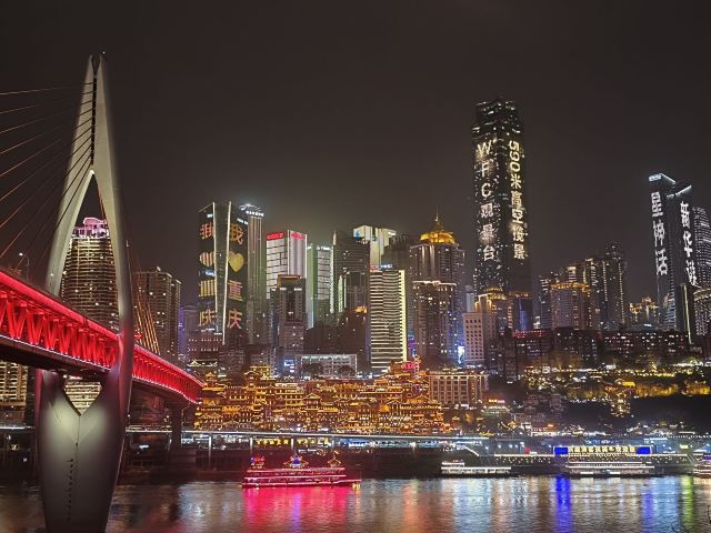 “不览夜景,未到重庆”,乘坐全程约千米的长江索道,是近距离俯瞰重庆夜景的不错体验。灯火辉煌的渝中半岛、璀璨夺目的滨江路、波光粼粼的长江水、流光溢彩的跨江大桥,交相辉映。如果你在蒙蒙细雨之夜,乘坐长江索道看夜景,还可欣赏到一幅水墨淡彩的《巴山夜雨图》,巴山雨态,水墨中的城市山林。