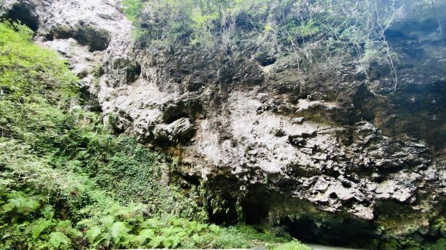 游览龙水峡地缝时,先乘坐电梯下到半山,再步行到地缝的谷底,沿岩壁栈道顺暗河前行,沿途处处是瀑布、溪流和原始植被。整条栈道全长大约4公里,曲折回转,两边都是峭壁,只有水流和瀑布声。