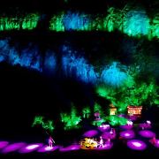 印象武隆的剧场选在距离仙女山镇约9公里的桃园大峡谷,抵达峡谷后,游客先要穿过一条长长的隧道,隧道两边的斜上方有44个投影仪打在墙壁上,以动态画面呈现武隆各大景区的景观,呈现出七彩绚丽的梦幻景致,让游客产生一种穿越时光隧道的幻觉。