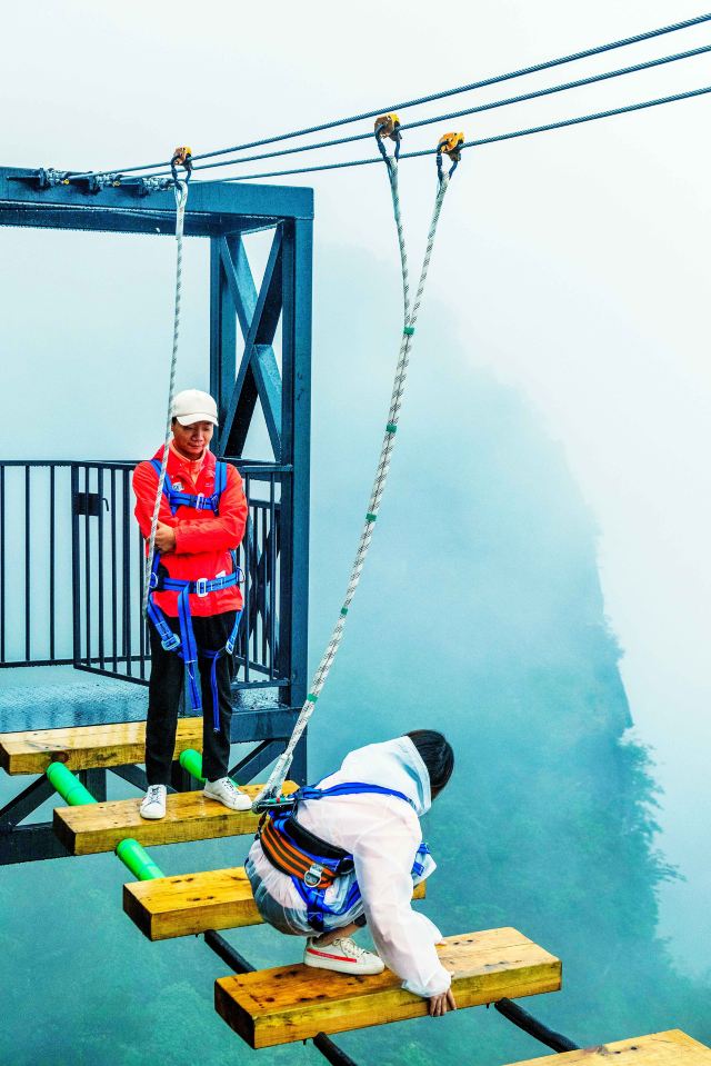在这里,游客们可以亲眼见证荣获吉尼斯世界纪录的“天空悬廊”,其壮观的悬挑空中玻璃走廊让每一位游客都叹为观止。更有被外媒誉为“全球九大惊险高空项目”之一的“步步惊心”,以及“云端荡绳”等数十个悬崖挑战与体验项目,每一项都挑战着游客的勇气与极限,使其成为全球悬崖体验项目集合地。