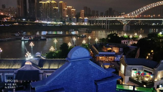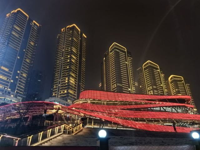 5分 超棒【景色】重庆南岸长嘉汇弹子石百年老街与现代都市景观交相辉映,很有韵味,弹子石老街,它以九级坡地方式立体呈现了整个景区,夜晚灯光璀璨,各色花灯格外迷人,漫步在南滨路观景台,隔江相望来福士广场、大剧院等,两江四岸的景色尽收眼底,夜景十分美丽。春节正月初一到正月十五每天晚上22:00点还有无人机表演。
