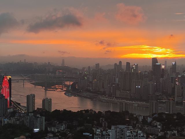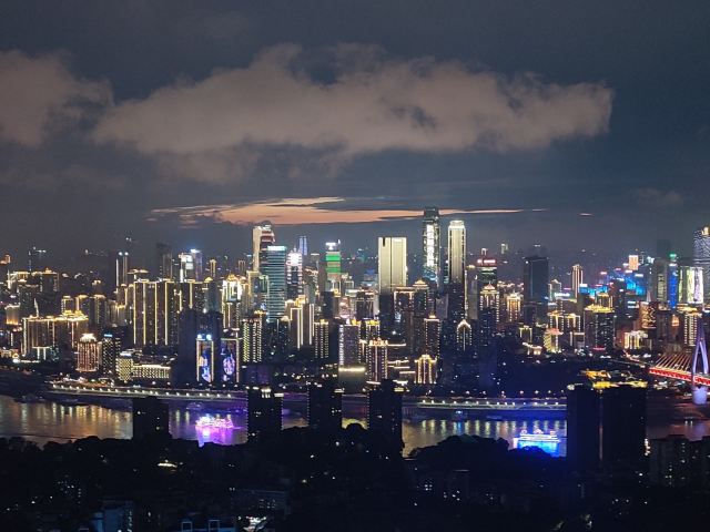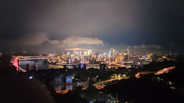 站在观景台上,远远望去,重庆渝中区万家灯火;环抱的两江,流光溢彩;飞跨的长桥,轮廓清晰;层见叠出,错落有致,色彩缤纷的整座城市,在夜空的衬托下美轮美奂,光彩夺目。