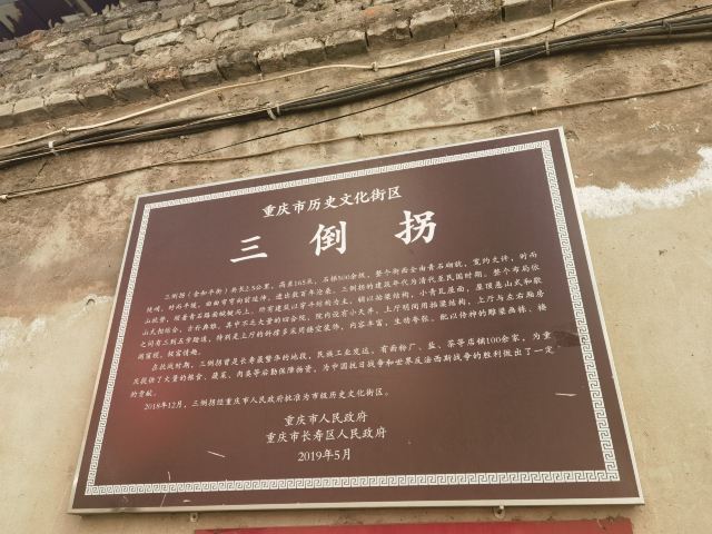 当地人俗称的三倒拐位于长寿旧城区,在长江边上一带,有一片明清街市建筑群。三倒拐的建筑始于明代中期,也是迄今为止库区保存相对较为完整的明清街市建筑。