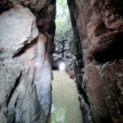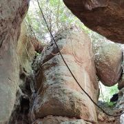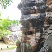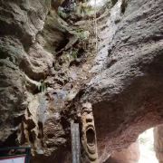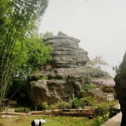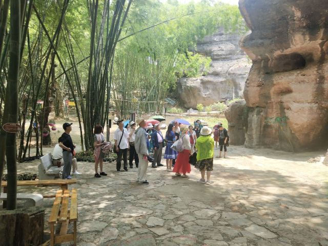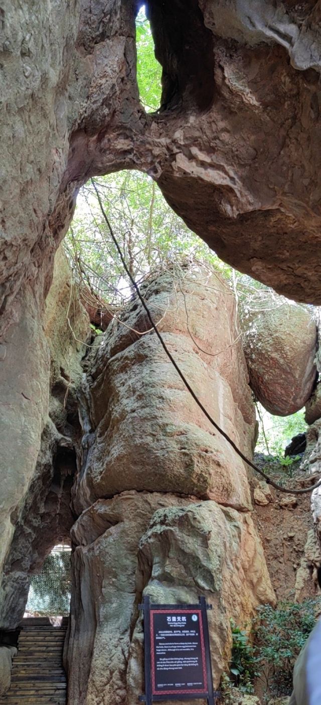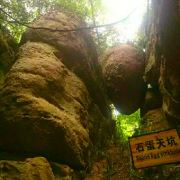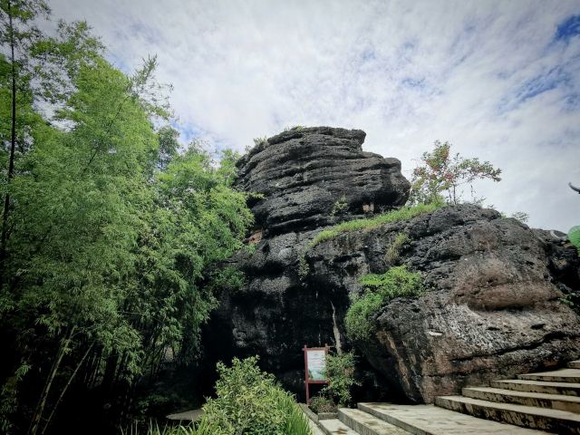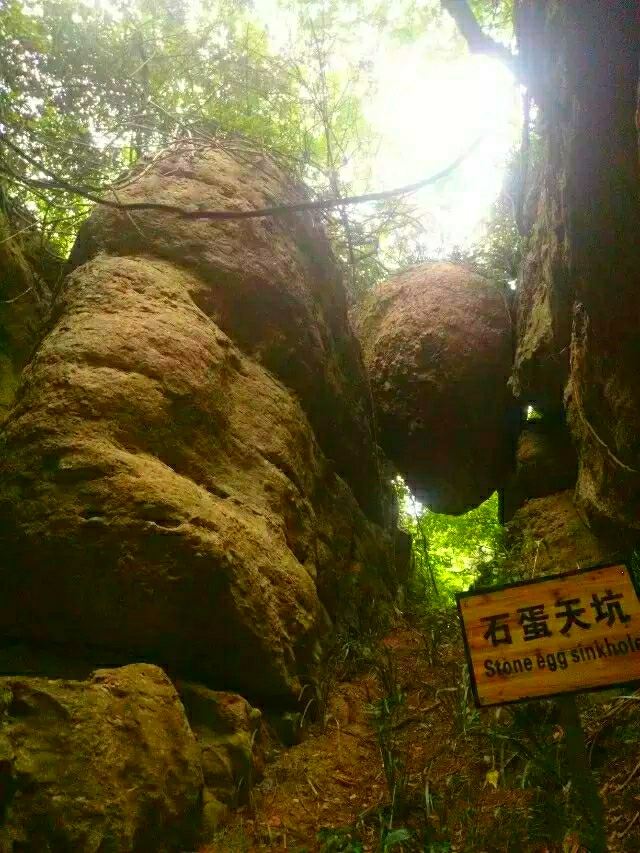 大自然的鬼斧神工,造就了形状奇异的石岩,有的像千年寿龟,有的像万年巨船,有的像海狮探月,有的像仙女下凡,有的像鼓,有的像桃,有的孤立,有的依偎,有的相拥。景区内洞石穿空,如天窗如天眼;断臂悬崖,似屏障似展帘;山蹦地裂。不论是石、是岩、是山、是洞眼、还是天坑,处处色彩斑斓。