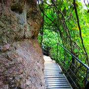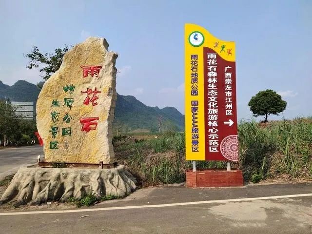 景区内石台层级布陈,游客拾台而上,如平生运势,步步高升。所到之处,所见之石,七彩分呈。景区依山傍水,色彩迷人,有幽谷、有老林、有洞石、有隧道、洞中有景,景中有洞,一步一景,处处是景。由于景区地质奇特,还拥有多处千古之谜的左江岩画。