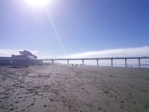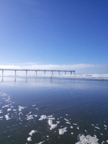 这个大桥是基督城新布莱顿海滩上的栈桥,它就像一条巨龙从岸边伸向海的深处。从沙滩上观看它,非常的壮观。大家可以从桥上一直深入大海,在这里垂钓,或者观赏海的美景,真是非常的漂亮。