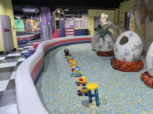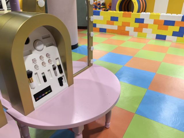 益智区:旋转木马、公主屋、警察局(公主、警察扮演)、加油站、童趣观影室、考古纳米沙池、梦幻泡泡球、欢乐蹦蹦床、图书馆、蹦床、模拟厨房超市、淘气堡冒险大闯关,DIY积木等多样玩法;