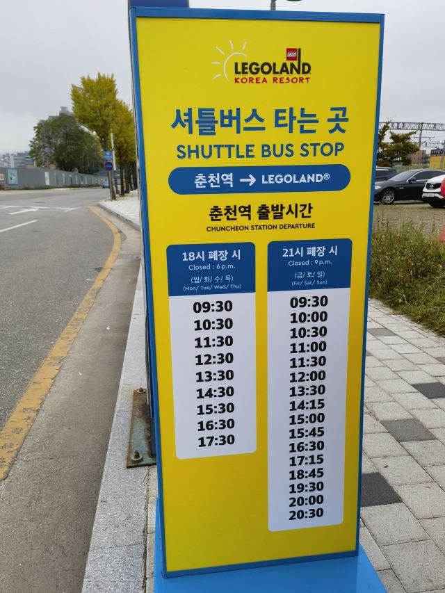 ⚠️交通:从龙山站~春川站坐itx需要1小时20分钟,票价成人9800/人,儿童4900/人。从清凉里站~春川站坐itx需要1小时,票价成人8600/人,儿童4300/人(韩国国土面积小,所以轨道交通比较复杂,没有卧铺火车,地铁、慢车itx、快车ktx全在一个站台上下车,像龙山站这样的大站,即是火车站又是地铁站,一定要注意)到了春川站,1号出口出来,往右手边走20米就可以看到接驳巴士站,黄色很醒目,要提醒大家一定要把转程的时间确定好,不要误了车。从春川站到乐高乐园大门打出租也不远,十几分钟,好像7千左右(冬天去的时候没赶上接驳大巴,打车去的价格有点不记得了)图1⃣️2⃣️3⃣️