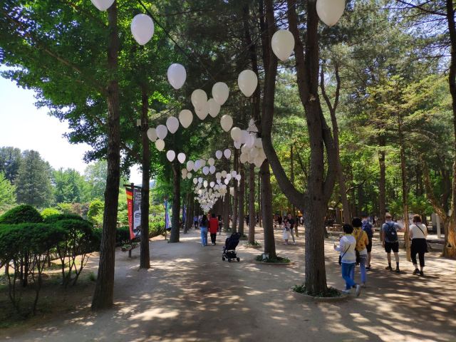 除了韩剧景点之外,南怡岛中心的广场附近还有很多美术长廊、博物馆和艺术馆,不定期的都会举办各种展出及表演。岛上还有邮政局及电视台,你可以在邮局寄明信片,也可以在电视台客串一次主播,免费帮你录制。另外,值得一提的是岛上的动物大家族,所有的动物都被放生起来,以各自的生活方式自由生活。你可以看到备受游客喜欢的鸵鸟、无所不在喜欢热闹的大松鼠和喜鹊。