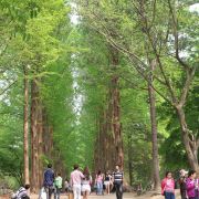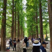 △ 接着就去《冬季恋歌》主要的拍摄地水杉步道游览一番,剧中的主要场景都在这附近,比如裴勇俊与崔志友的铜像、剧中男女主角初吻的长椅及电视剧资料展示厅等,你都可以在这里拍照留念,回味一下剧中的情景。