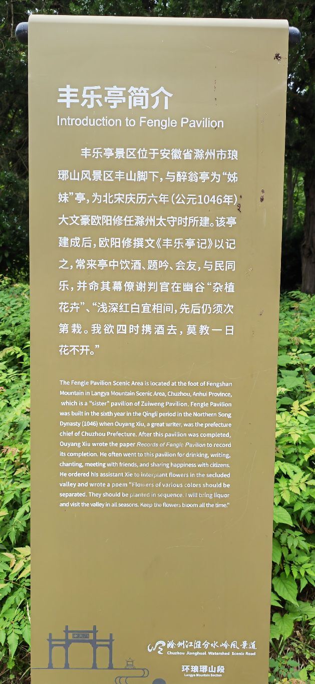 丰乐亭位于丰山脚下紫薇泉旁,为北宋欧阳修任滁州太守时所建,亲撰《丰乐亭记》记之,于亭间饮酒、题吟、会友、与民同乐。丰乐亭与醉翁亭都因欧公所建并著文而名满天下,并称“姊妹亭”,现存苏东坡所书《丰乐亭记》石刻及“滁州十二景”诗画。
