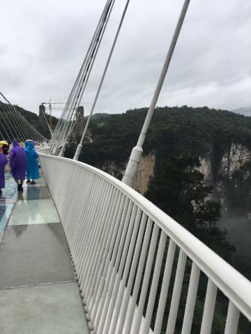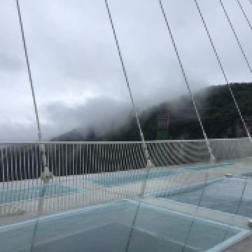 张家界大峡谷景区(玻璃桥),位于张家界大峡谷栗树垭和吴王坡区域内,桥面全部采用透明玻璃铺设,整个工程无钢筋混凝土桥墩。这是世界首座斜拉式高山峡谷玻璃桥,并创下多项世界记录,玻璃桥同时肩负了蹦极、溜索、舞台等多种功能。