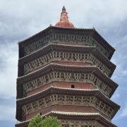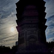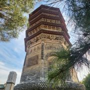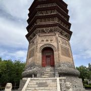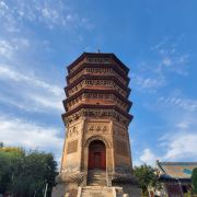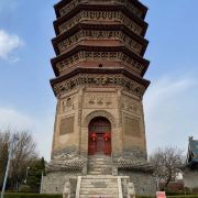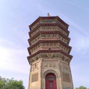 文峰塔位于安阳市古城内西北隅,高 38.65米,周长40米,因塔建于安阳天宁寺内,原名天宁寺塔;又因位于旧彰德府文庙东北方,作为代表当地“文风”的象征,故又称文峰塔。文峰塔建于五代后周广顺二年,距今已有一千余年的历史。虽经历了战争年代的炮火考验,至今依然屹立,巍峨壮观。文峰塔的建筑,富有独特的风格,具有上大下小的特点。由下往上一层大于一层,逐渐宽敞,是伞状形式,为国内外所罕见。