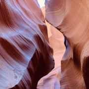 下羚羊峡谷是由风沙和湖水雕琢沙岩而形成的一种很抽象的自然景观,从上面看,峡谷和亚利桑那其他峡谷没有任何区别,但是从底部看,你会觉得自己身处一件很精美的艺术品中。峡谷的多处地方很狭窄,只允许一人通过。