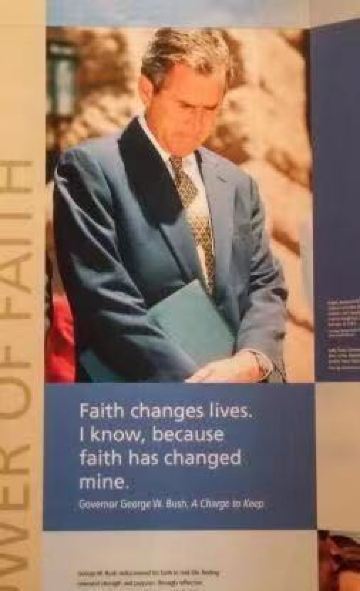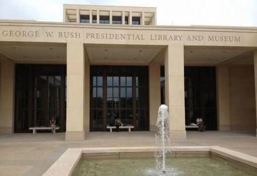 乔治·布什总统图书馆和博物馆位于美国得克萨斯州,坐落在得州农工大学校园的西部,白色透黄,庄严宏伟。 主体建筑是长方形的展览馆,其前端的上方是圆形堡垒的造型(里面就是一进门所见到的高大的圆形大厅)。附属建筑是资料馆等。周围有会议中心、公益服务学院等建筑。