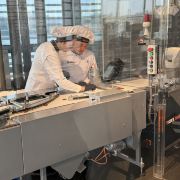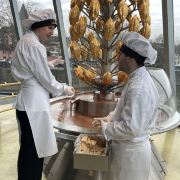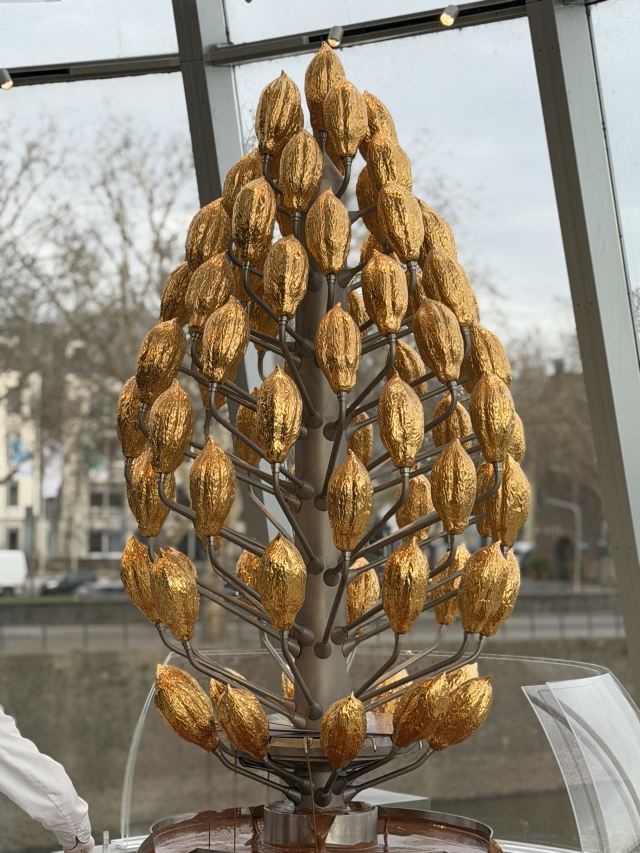除了参观,博物馆还提供试吃,巨大的转台上是一棵金色的巧克力果树,树下流淌着巧克力。工作人员会拿着华夫饼干沾上新鲜的巧克力酱,分给周围的吃货们。