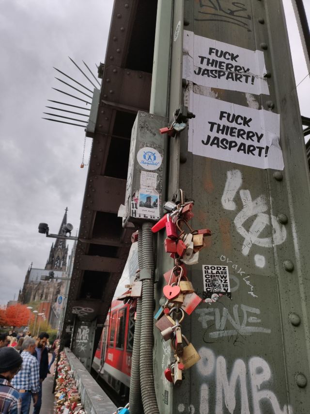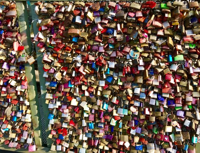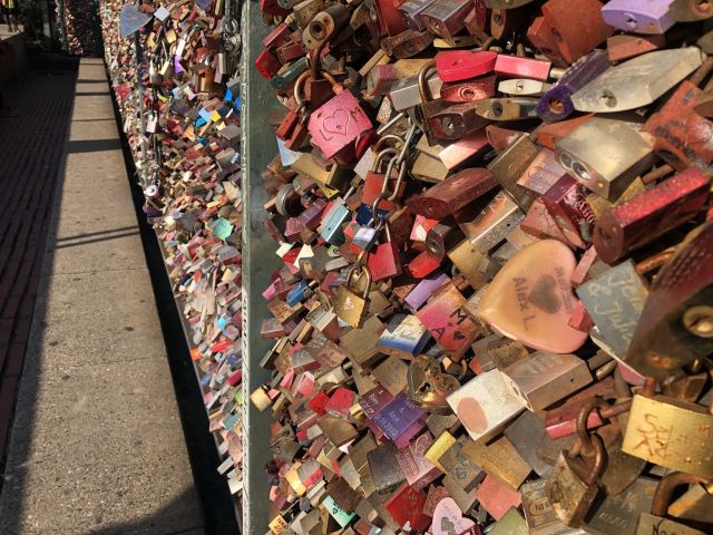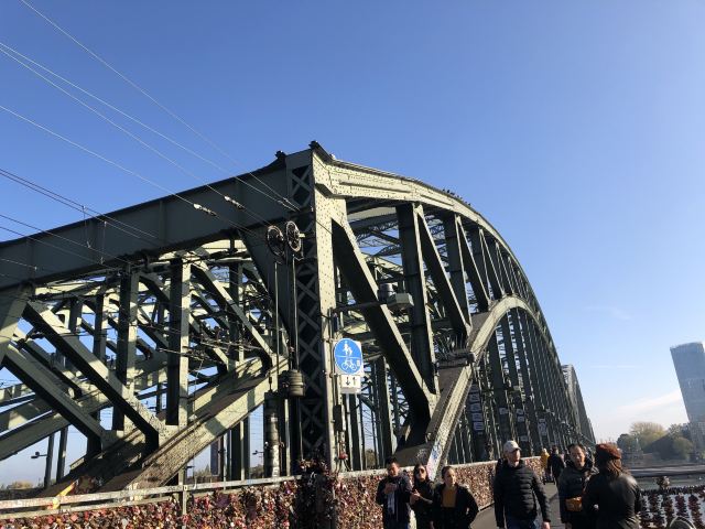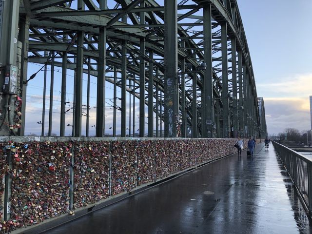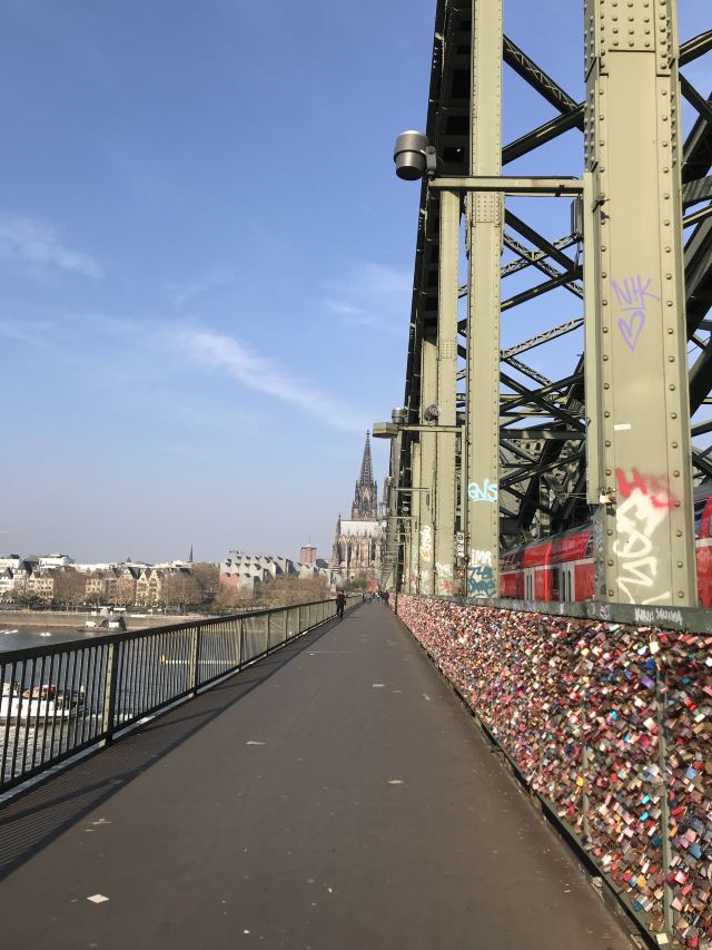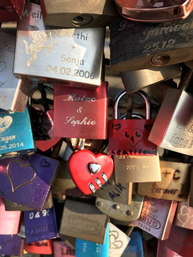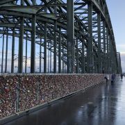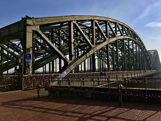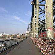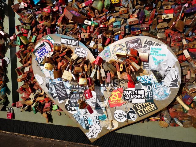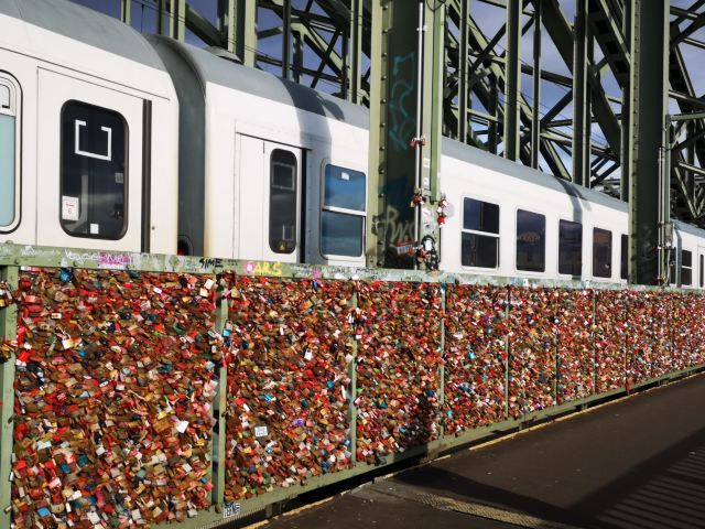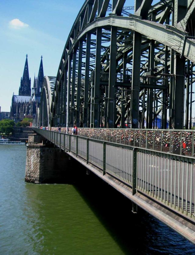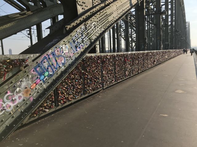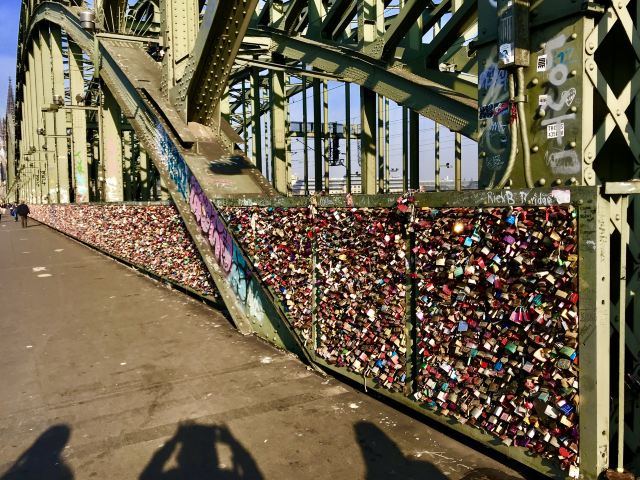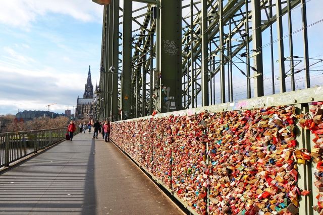 这座桥较有名的就是色彩斑斓的锁。2008夏末的一天,桥栏杆上被挂上一对爱情锁,自那之后许多情侣从德国各地赶赴科隆去锁住自己的爱情。科隆人相信在此桥上挂上一个锁,将钥匙丢进莱茵河,爱情就可以天长地久,所以很多当地人还有慕名而来的游客将自己和爱人的名字刻在锁上留在这座桥上,日积月累,锁越来越多,五彩斑斓的各式铜锁,形成独特的风景线。