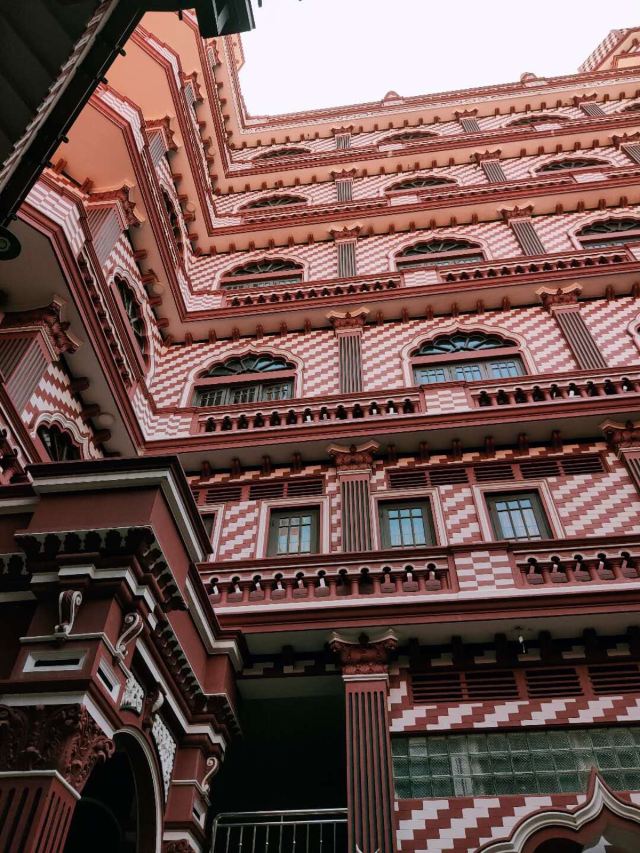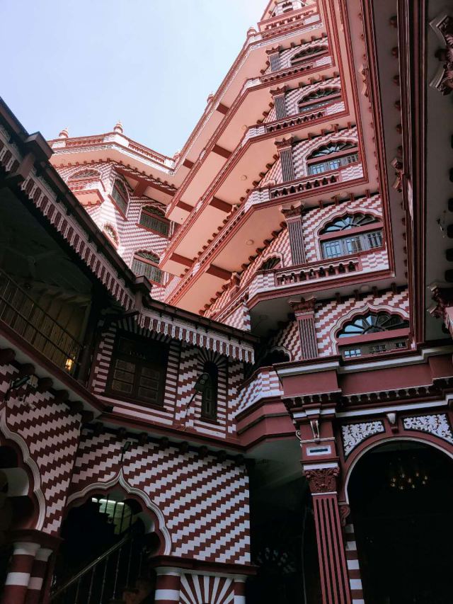 该寺建于1908年,是科伦坡的地标建筑之一。这是一栋红白两色相间的砖造建筑,在喧闹的贝塔区显得格外醒目。据说20世纪初,很多到斯里兰卡的水手都是通过它来辨认是否是科伦坡港口的。