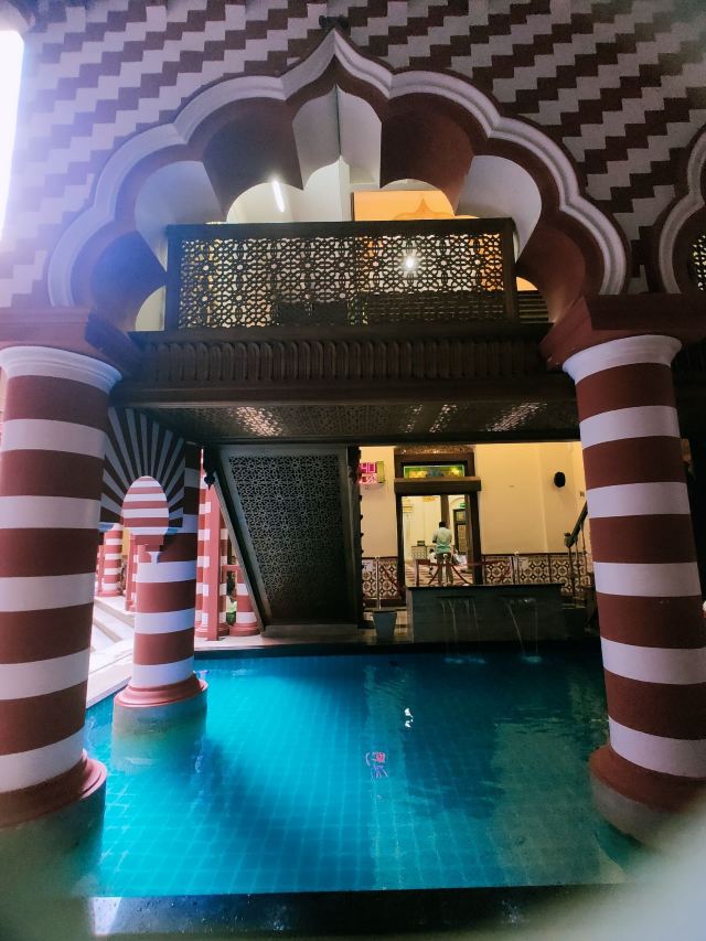 红色寺庙可以说是非常具有特色的一个了。不同于其他地方清新静雅的白、蓝等浅色外观,它采用红白二色,具有明显的印度建筑色彩和影响。