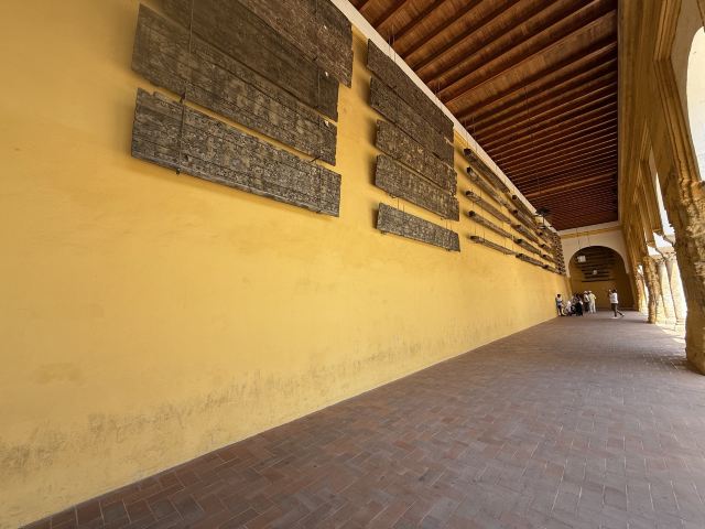 该寺呈长方形,穿过入口处的赎罪之门(Puerta de Perdón)就是橘园中庭(Patio de Naranjas),庭院里种植着橘树和棕榈树,颇显西班牙南部风情,中央的喷泉水声叮咚,周边绿树如茵,漫步其中,很是怡人。