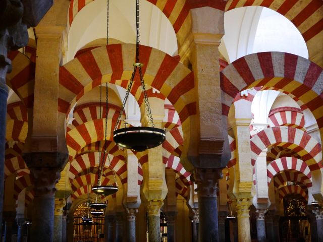 该寺始建于786年,由当时的阿拉伯摩尔人统治者阿拜德一世下令建造,主要由橘园中庭和寺本身组成。1236年后,该寺被天主教徒改作教堂,在原来的摩尔风格上又增加了哥特式和文艺复兴时的风格,前后共花了240年才完工。整座寺庙恍如一个混合了东西方多种建筑风格和宗教元素的空间,让人在穿梭于眼花缭乱的长廊时,仿佛走入了一个凝固了时空的奇妙领地。