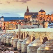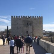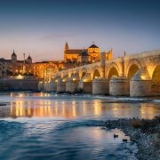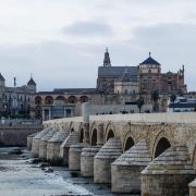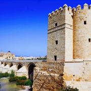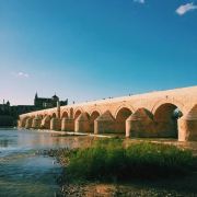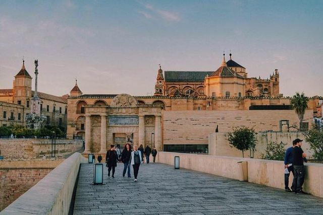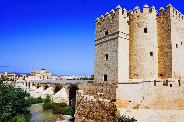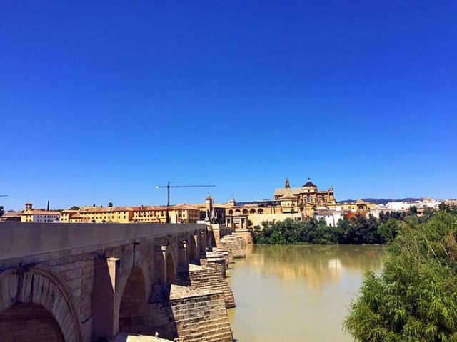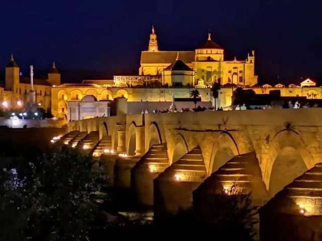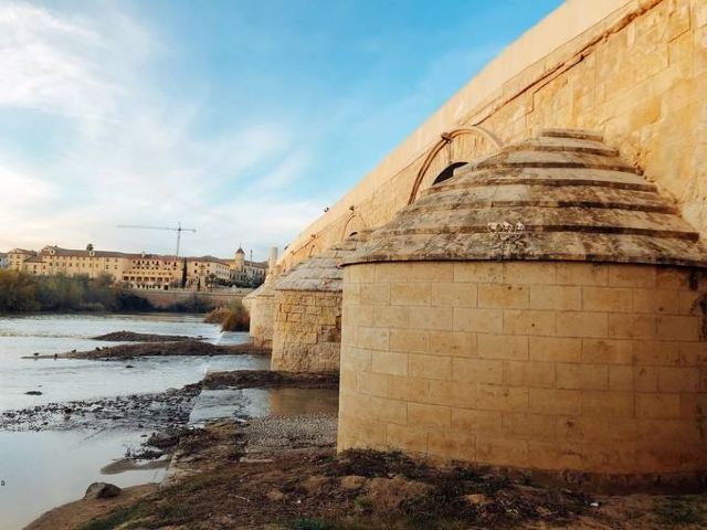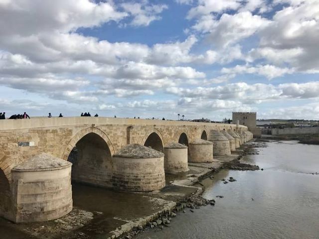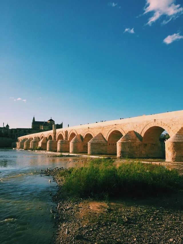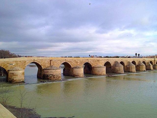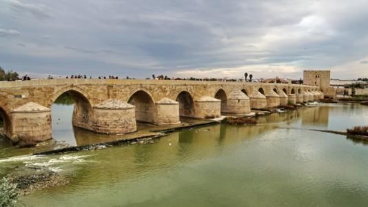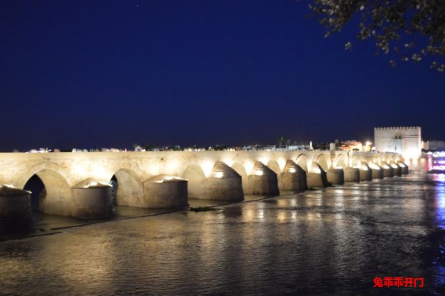 4分 满意古罗马桥,科尔多瓦的古老醒目地标,横跨瓜达尔基维尔河,连接着新老城区。长238米、宽16米的16孔石拱桥,始建于古罗马时代(约公元1世纪),摩尔人时代进行了扩建(公元8世纪后)并形成现有规模,13-19世纪进行了多次修缮,使用至今。