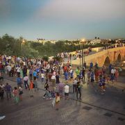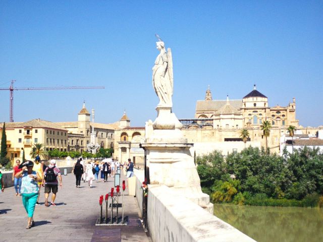漫步过桥,方正的石板桥面、坚实的水泥桥栏,有着八成新的成色;桥的中间,供奉着科尔多瓦守护神-圣拉斐尔天使的白色雕像,也是一景。
