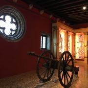 从位于斯拉夫人堤岸的售票入口买票入场,票子后面有一张简易地图,标识着总督宫、圣马可大教堂与旁边的工艺博物馆的位置。工艺博物馆里展出了许多总督宫的原件雕饰。馆内展示入场后,首先来到中庭,其特点为文艺复兴风格的大理石雕饰,在这里可以看到毗连的圣马可大教堂的“洋葱头”穹顶,上面有时钟造型的大理石立面。庭院三面回廊的一楼为文艺复兴式的规律圆拱门,二楼则为哥特式尖拱门,与总督宫正面外观都是哥特式尖形拱门有所不同。二楼长廊上有数个狮头造型的抓耙子信箱狮子口,是用来收受匿名检举信件,民众只要把信投入狮子的嘴即可。当时威尼斯政府鼓励告密并且保护举报人,在信箱特地设置了三个锁,必需由拥有三把钥匙的三个人才打得开。另外,站在二楼长廊的空中阳台上,可以眺望圣马可广场和泻湖。庭院里有8座古希腊时期的雕像。院内的地上有两口雕刻细腻的青铜蓄水井,是16世纪被认为威尼斯精美的作品。这水井能从外面的水道吸水至中庭储存,在过去可是全威尼斯质量好的水,每天有很多贩子跑来总督府取水,然后带着这些井水到较远的地区去贩卖。接着来到了参观路线的正式起点——黄金阶梯,由此进入总督府的内部。在黄金阶梯拱门的入口处,左边是大力士赫尔克里士斩除蛇妖,右边是擎天神阿特拉斯扛着地球,它们分别在入口处的二侧石柱上方,用以代表威尼斯强权的象征。建于16世纪的黄金阶梯早期只有贵族及重要宾客才能登此梯进入宫殿内部。阶梯可以说是金碧辉煌,顶上的天花板雕刻,其实是以石膏定形后再贴上一层金箔装饰而成。顺着黄金阶梯直达总督府三楼,这里的每间厅室都极尽华美,从天花板到四周的墙壁,处处是富丽堂皇的装饰。不过根据这里的规定二楼以上就不准拍照了。总督府主要厅室有地图厅、四门厅、会议厅、十人厅、元老厅和大会议厅等。地图厅的墙上装饰着世界地图,里面还保存着两个巨大的地球仪。大会议厅内有丁托列托的巨型壁画《天堂》,取材于但丁的《神曲》,画中有700多个人物,被喻为世界大的油画。参观完各种厅之后,走到展示各式兵器枪炮、弹药铠甲的军械库,其内保存了十字军东征武器、根据达文西设计仿制的第一把机关枪及令人怵目惊心的贞操带。接着走道变得昏暗,你将来到设在总督宫地下室的牢房。当时的牢房数量不够,于是在宫殿旁边另建座新监狱,成为历史上早以监禁犯人为目的的独立建筑,另又兴建了连结两处的叹息桥。