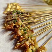 5分 超棒金灿灿的脆皮五花肉、香气扑鼻的烧烤、芋头糕、牛肉丸、粉胶、大肠包小肠……在啦喜街美食广场的摊主,没两把刷子是待不下去的,不少人从大学入学吃到了成家立业。