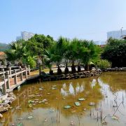 最大的亮点当然就是中间的池塘了,还用了很多的苏氏园林的造园方法做很多的堆砌,有假山叠石,有小亭流水还是蛮不错的,如果在附近逛街逛腻了过来这里休息一下也是不错。