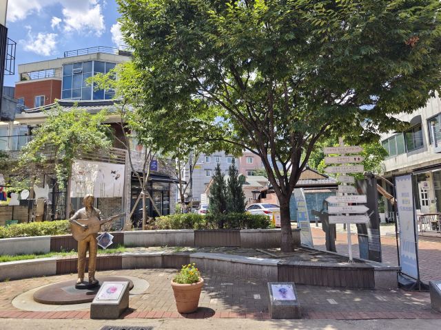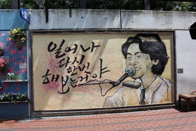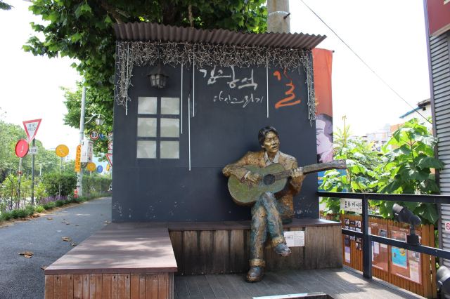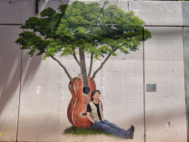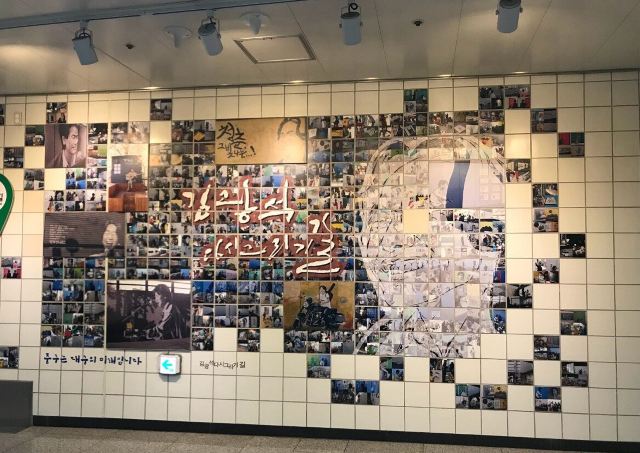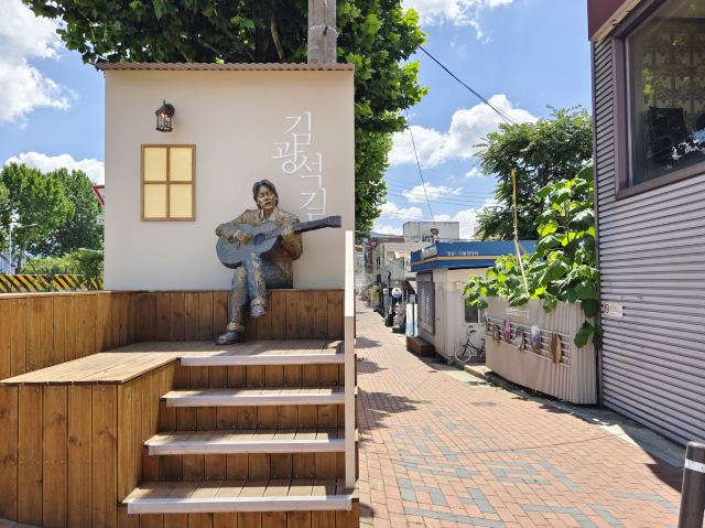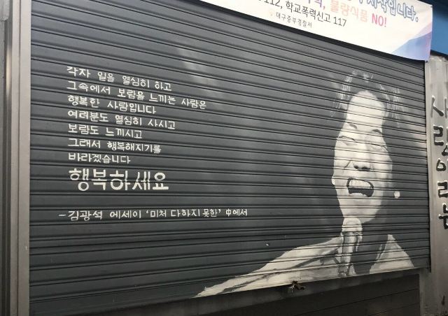 金光石路是位于韩国大邱的一条以已故音乐人金光石命名的壁画街,那里的一间咖啡屋或是露天小剧场,或是密密匝匝的爱情锁,或是一幅幅漫画,一段段文字,一首首诗词,无一不记录着人们对金光石的怀念和喜爱。壁画街上有不少精致独特的咖啡店,是喝下午茶的好去处。