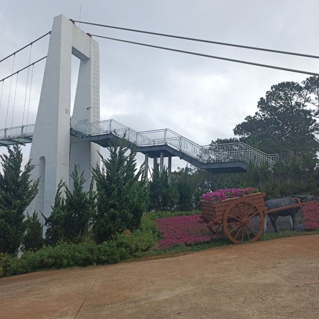 除了自然风光,情人谷还像个游乐场,有雕塑、绿地、长椅、鲜花,还有小火车和木屋。入口处有花车,还有牛仔打扮骑着马的越南小伙子,可以和他合影,费用是2000越南盾。