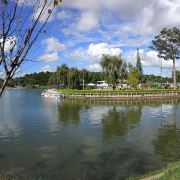 春香湖是大叻一个美丽的月牙形人工湖,形状酷似越南版图,为了纪念越南知名女诗人胡春香而命名,湖畔绿柳环绕,天鹅在清澈的湖水上觅食,游船和划艇在湖面上悠闲地划行,一派悠然、宁静的景象。
