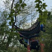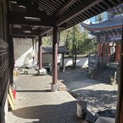 从大理古城向北,骑行电动车约20分钟(7公里),或在西城门乘小巴至双阳村,沿途掠过金黄的稻田与白族村落,苍山巍峨在望。导航“无为寺停车场”,步行穿过“灵鹫山”山门,可选左侧石阶或右侧溪涧小道——后者更妙,流水潺潺伴青苔石阶,蕨类植物垂落如帘,15分钟即抵古寺。(贴士:自驾可直达救疫泉停车场,缩短徒步距离)