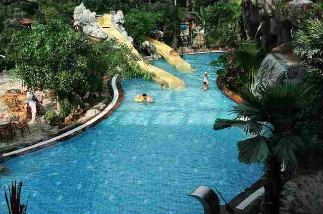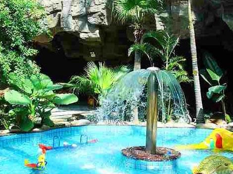 成园温泉山庄风光旖旎,景色天成。郁郁葱葱的北龙山与碧水相连,形成一道天然的绿色屏障,这里远离闹市却交通便捷。这里有山林环绕、绿意盎然;这里有群楼映水、波光潋滟;这里有神奇的千年参王,“子孙满堂”漫山遍野、紫气凌人;这里有神泉圣水,山庄嬉水乐园、露天温泉、客房内的淋浴、泡浴、游泳用水均为远古深层温泉水。