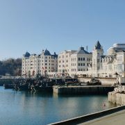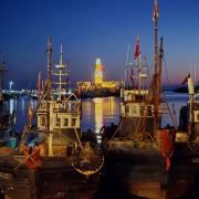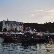 渔人码头位于老虎滩海洋公园东侧的虎滩渔港内,这里景色优美,环境极具文艺范儿。渔人码头的文化概念源自欧美,这里一边是许多五颜六色的欧式建筑,另一侧是停泊着渔船的海港,充满着浓郁的欧陆风情。