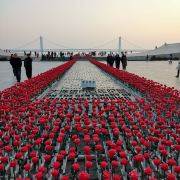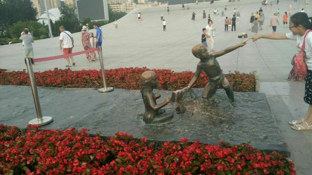 5分 超棒百年城雕是1999年,为纪念大连建市百年。在星海广场南部海滨建起一座巨型城雕。立体城雕占地5000平方米,长100米,宽50米,形同打开的一本大书平铺在海岸边,很是壮观!