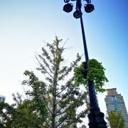 港湾广场是大连港客运码头前的交通广场,占地面积1.5万平方米,其中中心绿地面积5300平方米。广场中间是铜制的郑和下西洋的帆船模型,展现了中国古代的航海文明。广场西北角是大连服装交易市场和大连古玩交易市场。港湾广场建设至今经过了多次改造。起初港湾广场是由若干个分散的花坛构成的广场,后来改造成以中心椭圆形绿色模纹花坛为中心的植物景观广场,现在改造成如今的集雕塑、水景、植物景观为一体的景观广场。