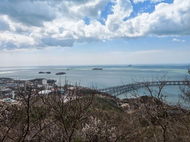乘坐观景小火车沿着蜿蜒的山路缓缓上行,沿途茂密的森林郁郁葱葱,清新的草木香气扑面而来,城市的喧嚣渐渐被抛在身后。抵达观景台,360度无死角的视野瞬间将我俘获——脚下是错落有致的城市建筑群,远处星海湾跨海大桥宛如银龙卧波,在阳光下闪烁着金属光泽;星海广场、滨海路像丝带般蜿蜒铺展,将城市与海洋串联;极目远眺,黄海与蓝天在天际线处融为一体,波光粼粼的海面偶尔驶过几艘渔船,勾勒出一幅动静相宜的画卷。尤其在日落时分,橘红色的晚霞将天空染成梦幻的色彩,海面被映得通红,大桥的轮廓在暮色中逐渐亮起璀璨的灯光,眼前的一切美得令人窒息,让人忍不住按下快门,想要定格这每一帧的绝美画面。
