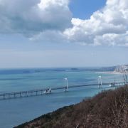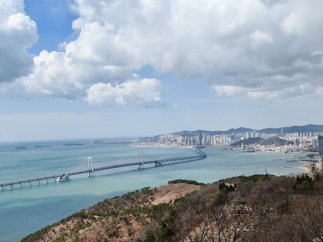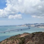 巴士直达观景台,甫一登顶,磅礴的跨海大桥便跃入眼帘。冬日晴空下,桥身如银龙横卧碧波,海天相接处云卷云舒,360度无遮挡的视野令人惊叹,随手一拍便是大片既视感。