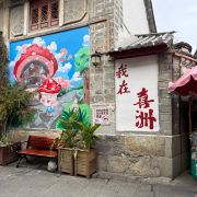 进入古镇不远,有一座紫云山寺,现有的建筑建于清朝,看上去相当破旧,常有一些当地老年人在这里活动,晒太阳。再往内是四方街,这里是由众多店铺围成的小广场,也是整个镇子的中心,游玩喜洲通常从四方街开始。四方街是名小吃喜洲粑粑的原产地,味道很正宗的。