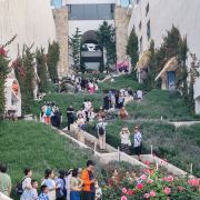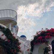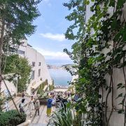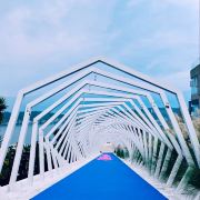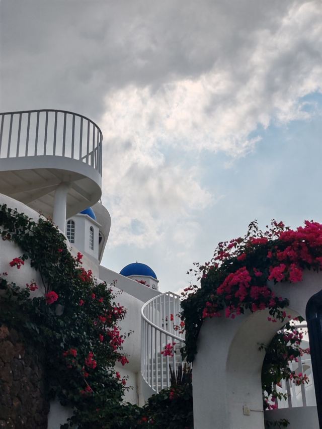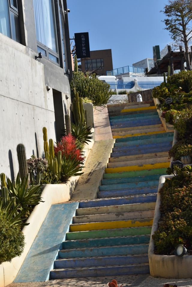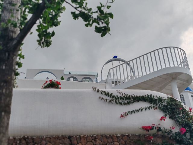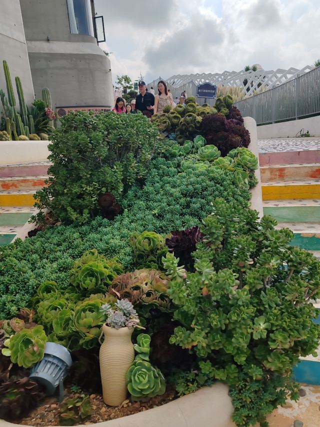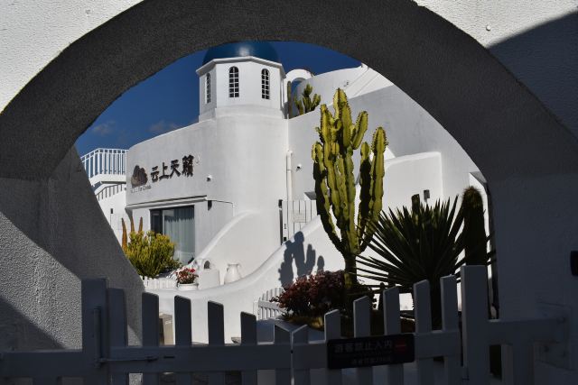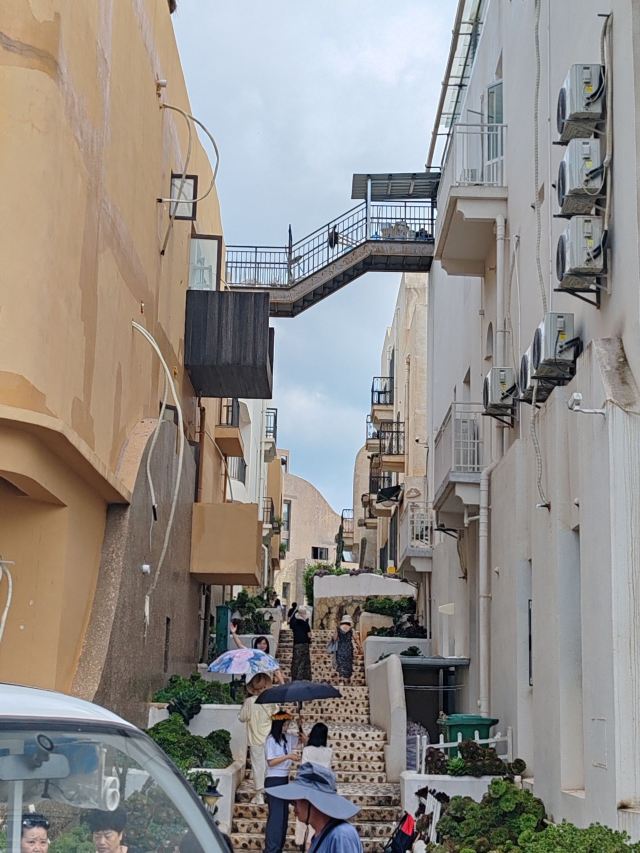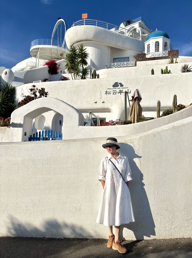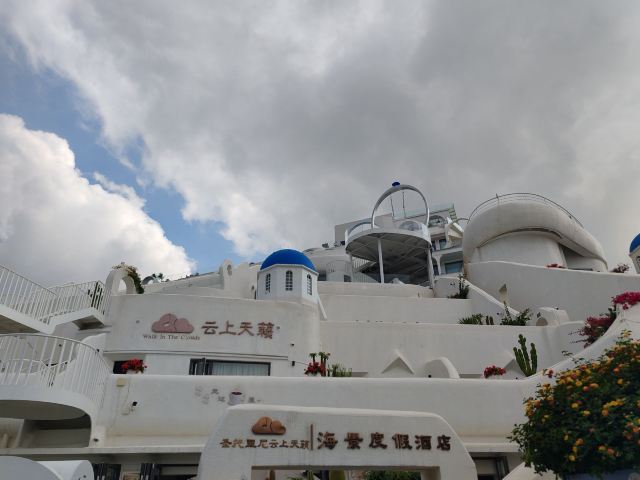 路线一:进入园区后,第一个左转上楼梯,不要走鲜花大道,下来时可以走。经过理想桥继续前行,上一个大陡坡,即可看到圣托里尼风格的白色建筑群,这里是网红拍照点。
