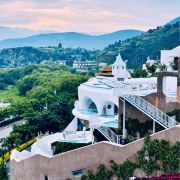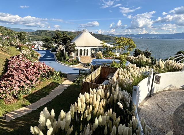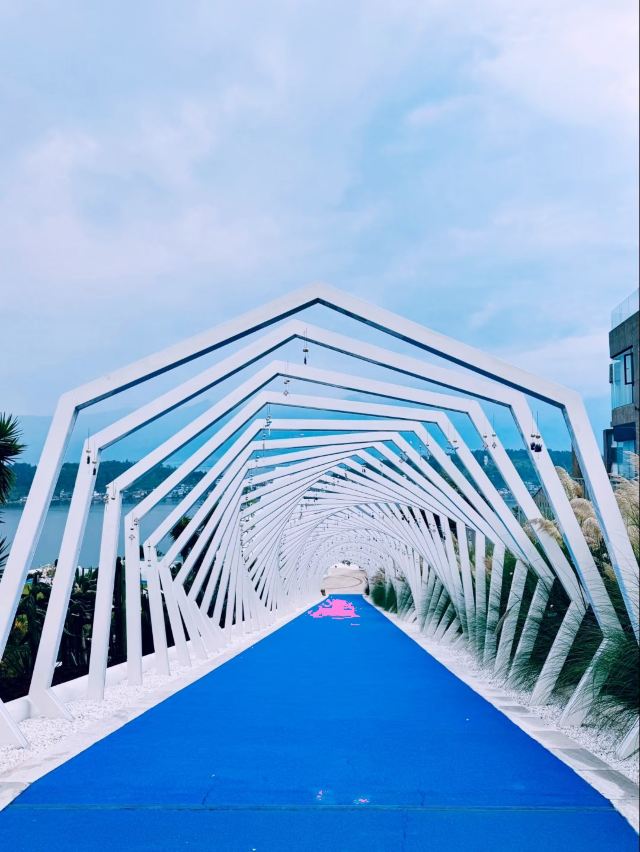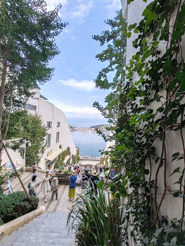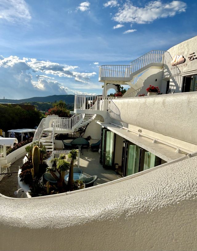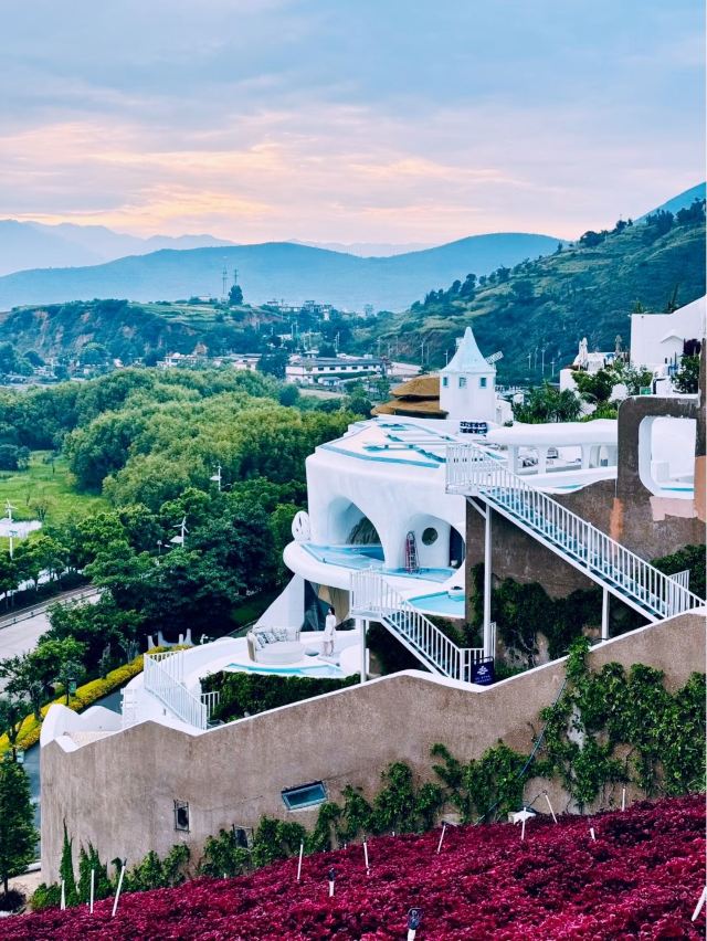 大理理想邦坐落于环海东路临海崖壁之上,是一处将地中海建筑美学与苍洱风光有机融合的创意度假聚落。不同于传统文旅小镇,这里以“山海剧场”为设计概念,纯白阶梯式建筑群沿山势层叠错落,拱形门廊与多肉植物景观相映成趣,形成光影流动的立体艺术空间。